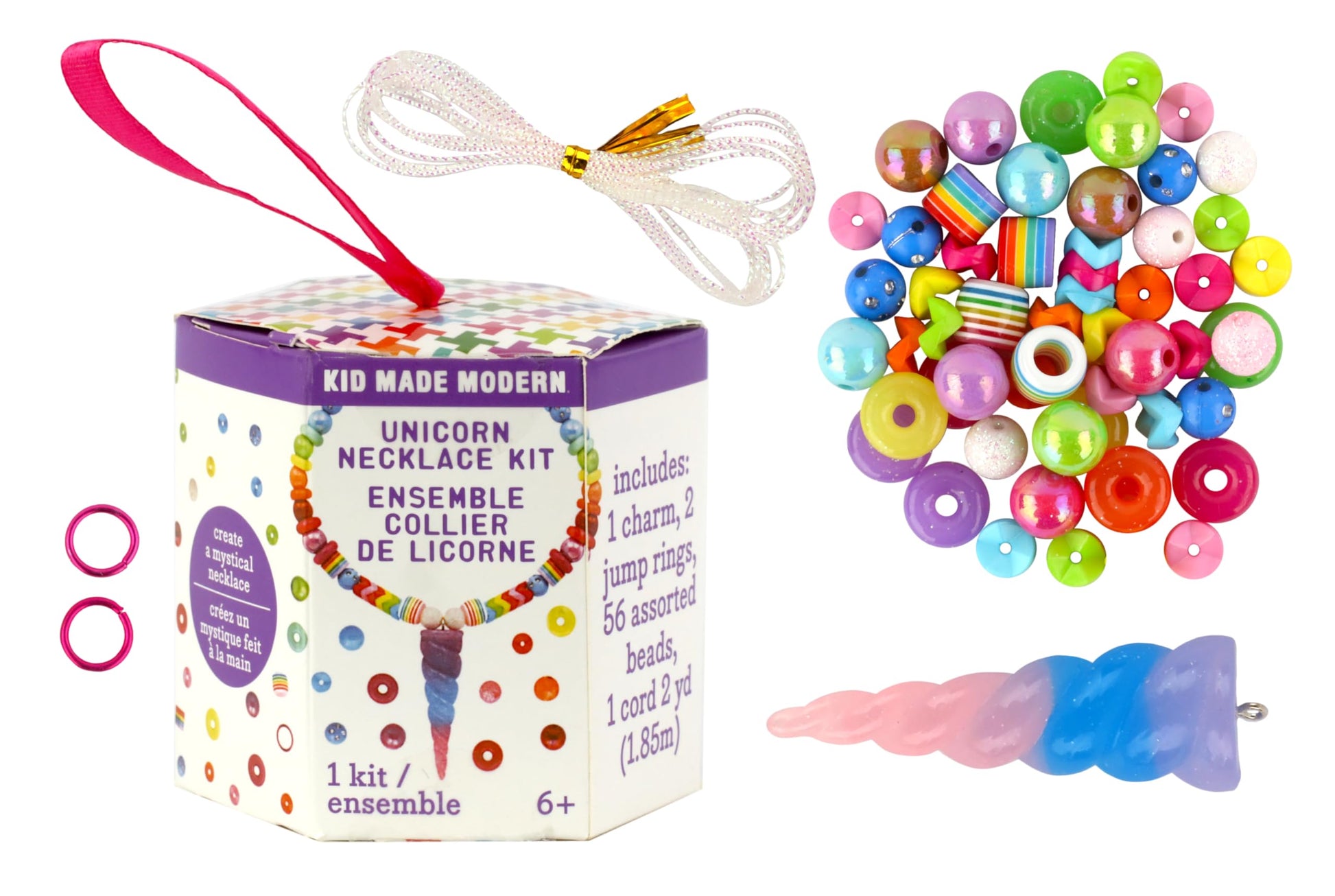 Details: Kid Made Modern Unicorn DIY Necklace Kit and Craft Sets offer an engaging creative experience for young girls aged 6 to 8 and above. Packed with vibrant beads, accessories, and essential crafting tools, this kit ignites imagination and encourages artistic expression. The Bead Bliss Bracelet Kit, a highlight of this set, includes an assortment of 56 beads in various colors and designs, along with a charm, jump rings, and a cord. Also, this bracelet kit could even be an ideal birthday, Christmas or graduation gift for teen girls or big sisters! Designed to spark joy and creativity, the kit serves as a platform for children to explore their artistic inclinations. By combining different beads and accessories, youngsters can experiment with patterns, colors, and textures, enhancing their fine motor skills and aesthetic sensibilities.
